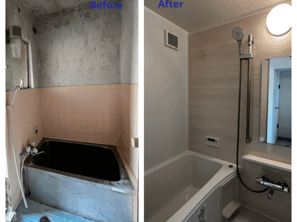 既存撤去、ユニットバス設置、設備工事